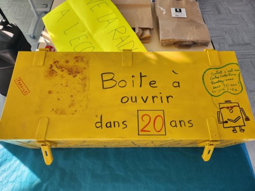 Le samedi 10 octobre au Centre Malraux à Toul, beaucoup d’émotion à l’ouverture de la malle contenant lettres, dessins et témoignages d’écoliers… cette belle malle jaune fermée en 2006 lors de la 20ème Fête de la Com’ organisée sur la commune de Lay-Saint-Rémy, rouverte 20 ans plus tard notamment par Valérie Royer, directrice de l’école de Lay-Saint-Rémy en 2006 et Elisabeth Deligny, directrice de la MJC de Toul et animatrice du collectif des AJC (Assises de la Jeunesse et de la Culture).