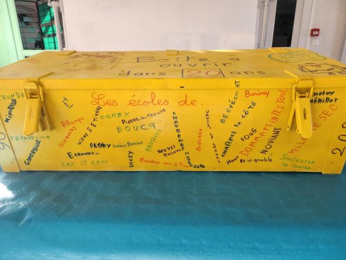 La malle aux souvenirs va désormais parcourir les écoles participantes aux AJC (Assises de la Jeunesse et de la Culture) durant toute l’année scolaire, pour que les enfants d’aujourd’hui puissent explorer le contenu des enveloppes et se projeter à leur tour dans l’avenir.